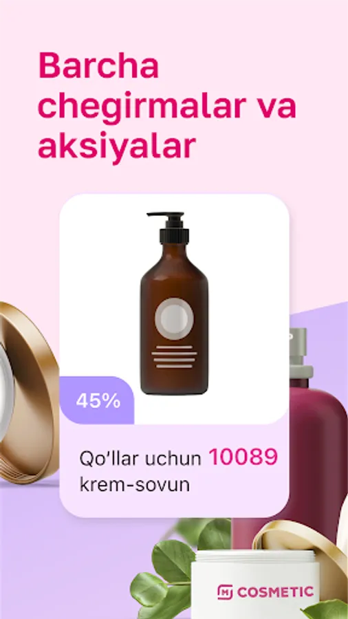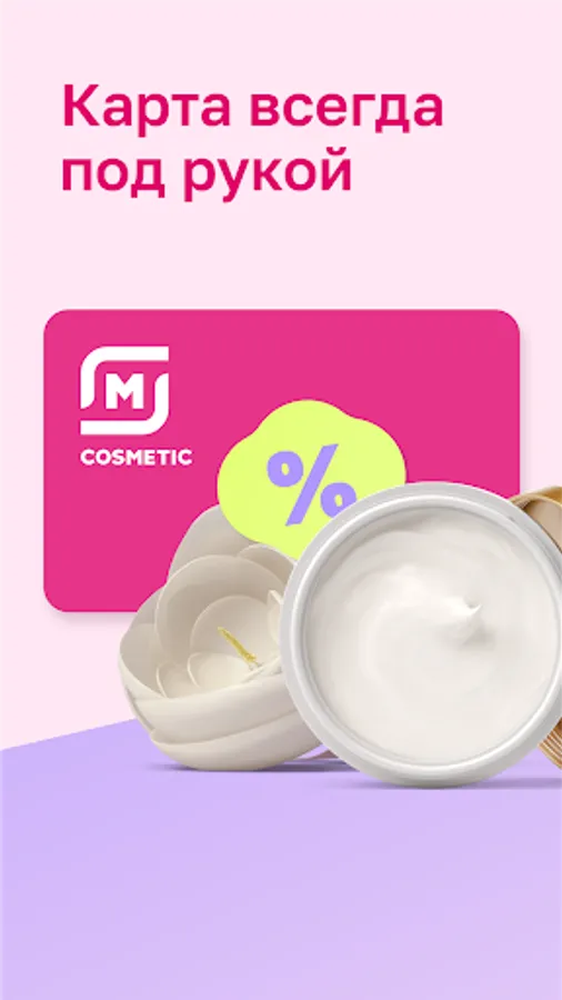 Ilovada M COSMETIC bepul virtual kartasini rasmiylashtiring va sevimli tovarlaringizga chegirmalar oling. Ilovada sizga quyidagilar erishimli bo‘ladi: