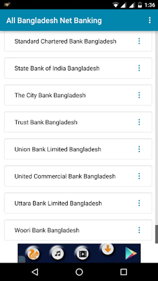 The application helps you to access net banking of multiple Bangladesh banks at one place. You just have to select your bank and its net banking website will load in an app.