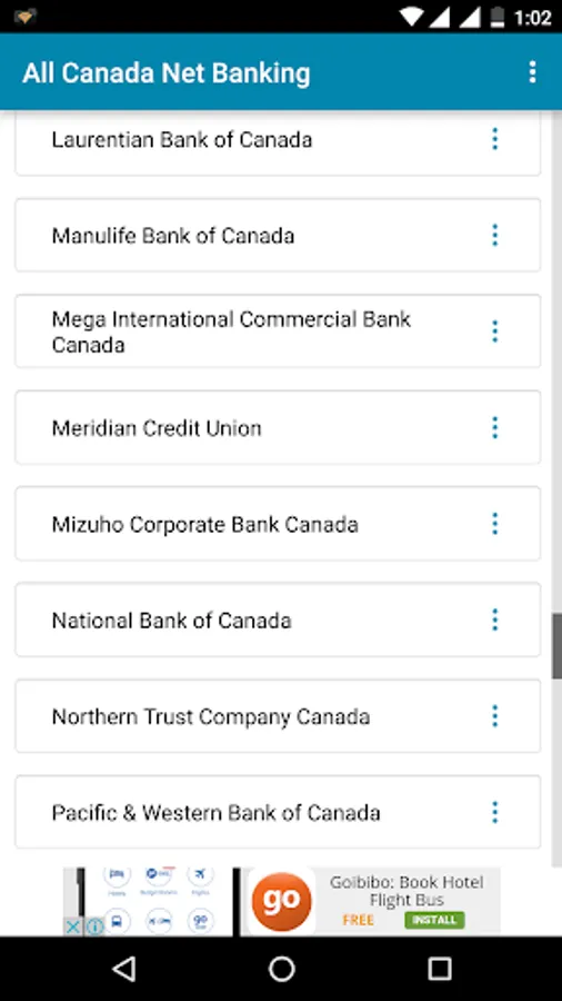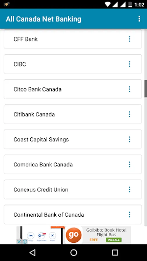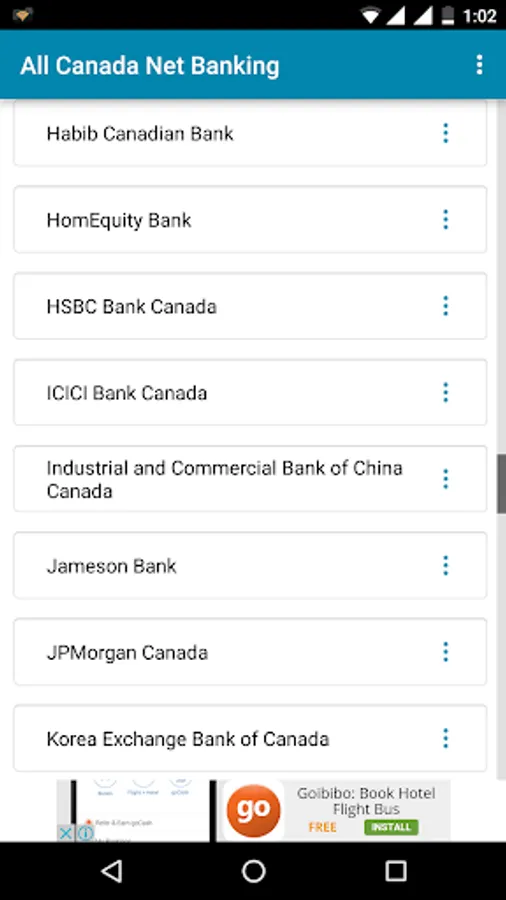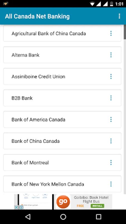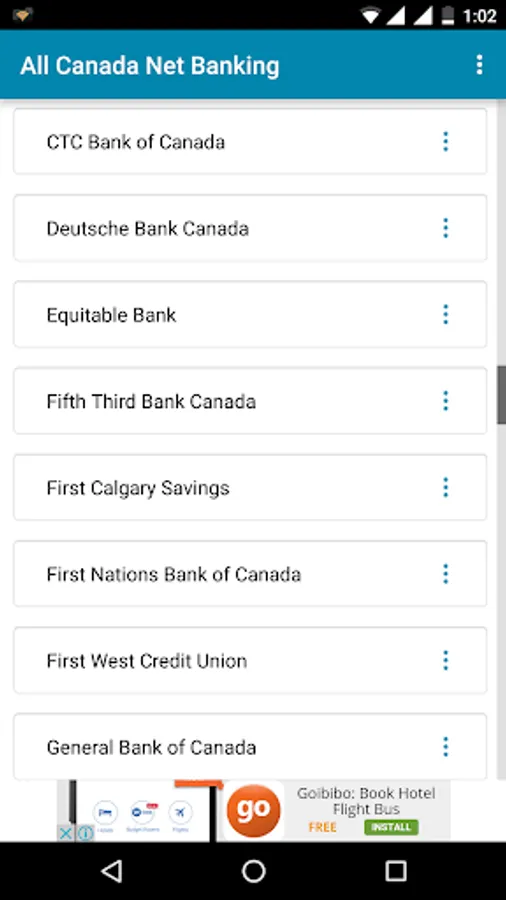 The application helps you to access net banking of multiple Canada banks at one place. You just have to select your bank and its net banking website will load in an app.
