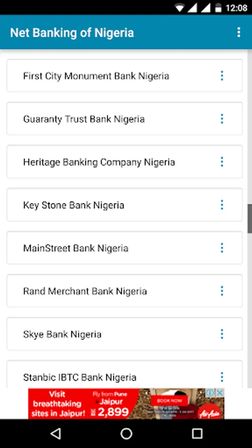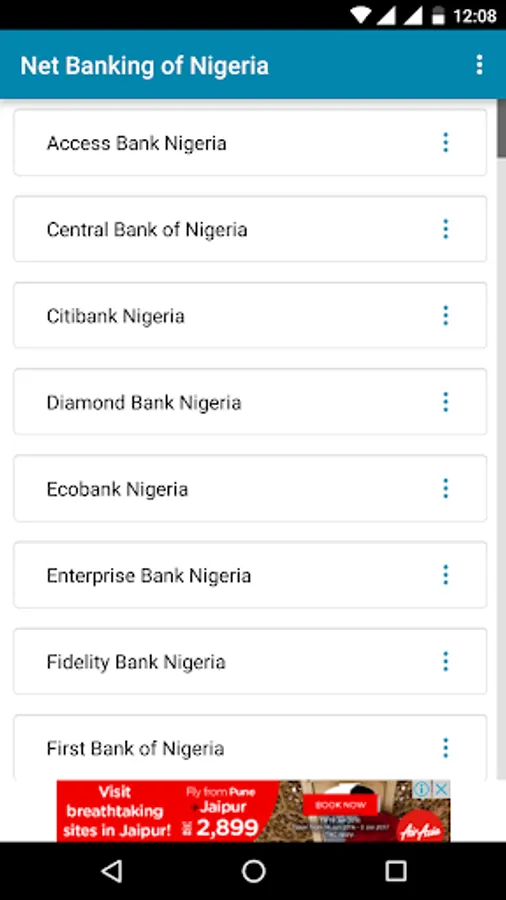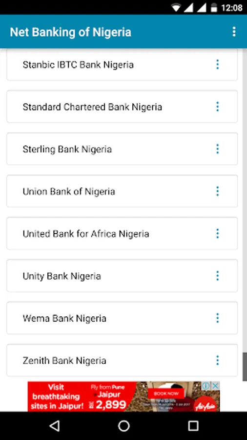 The application helps you to access net banking of multiple Nigeria banks at one place. You just have to select your bank and its net banking website will load in an app.