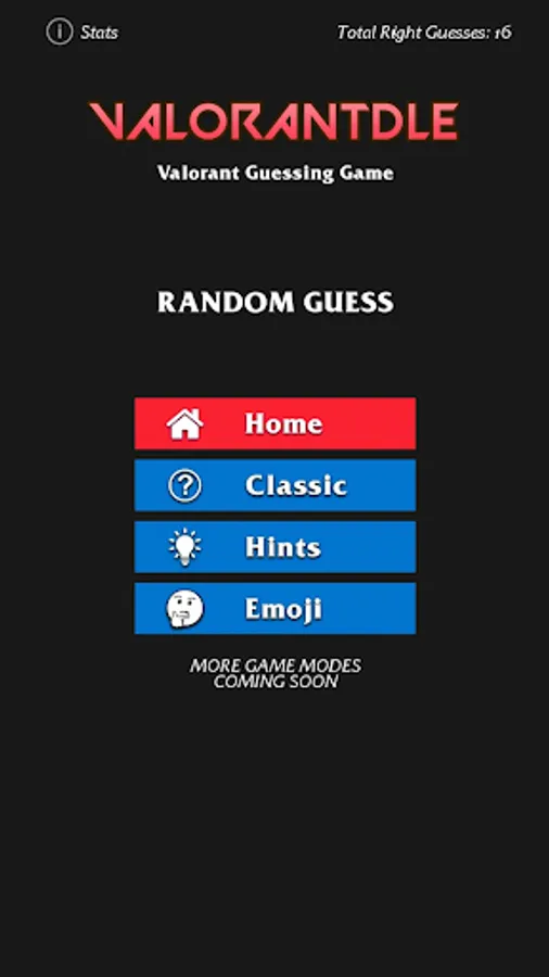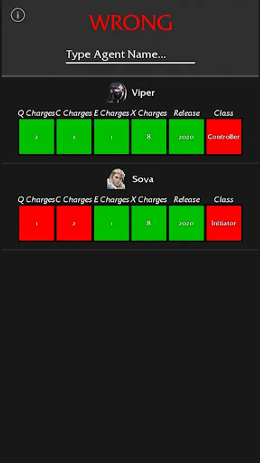 - Classic: Type an agent to see how many characteristics you have guessed correctly, wrong or partially.