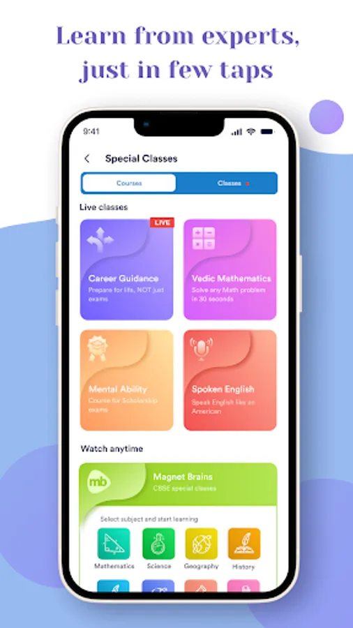 The live classes from highly distinguished instructors would be held periodically to target difficult topics from the curriculum and students can attend these classes.
