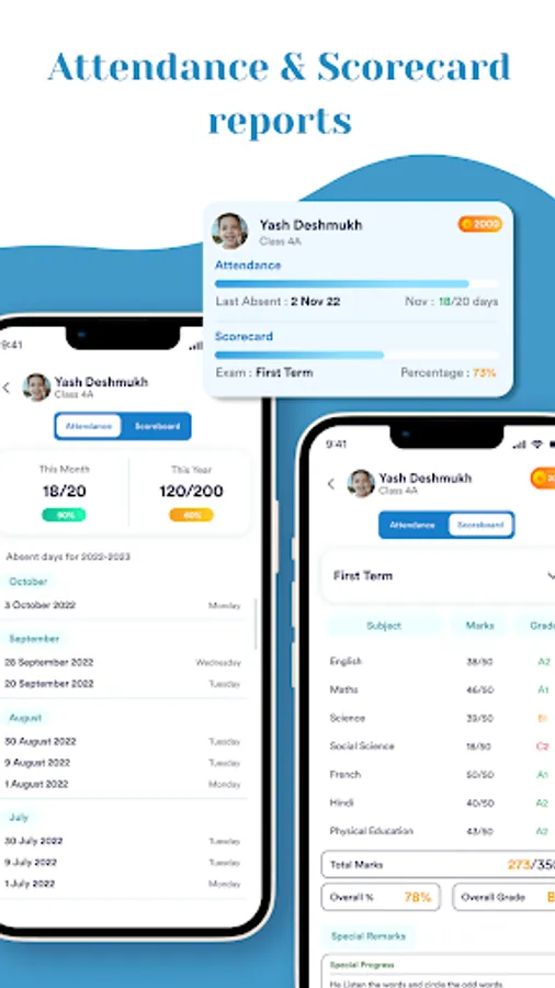 It also helps parents monitor their kid's attendance & performance on a regular basis with a touch of one click.