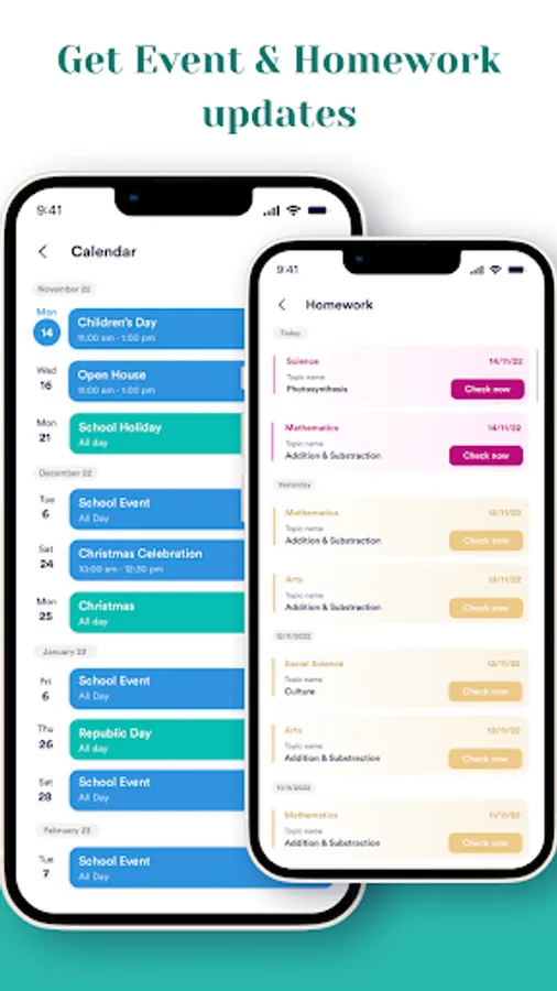 Students and parents can see the daily homework assigned by the teachers in their app.