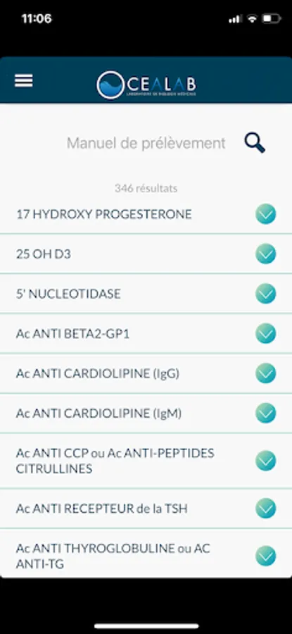 Océalab laboratories offer you the "Sampling manual" application, intended for health professionals. For each of the samples, you will find all the rules necessary to obtain a correct analysis. Available online and offline, you will have access to the information base at any time.