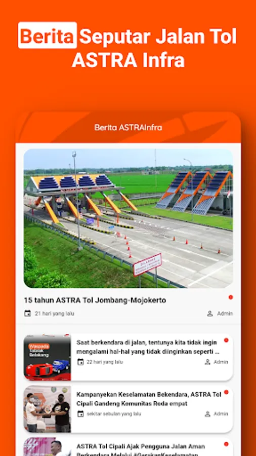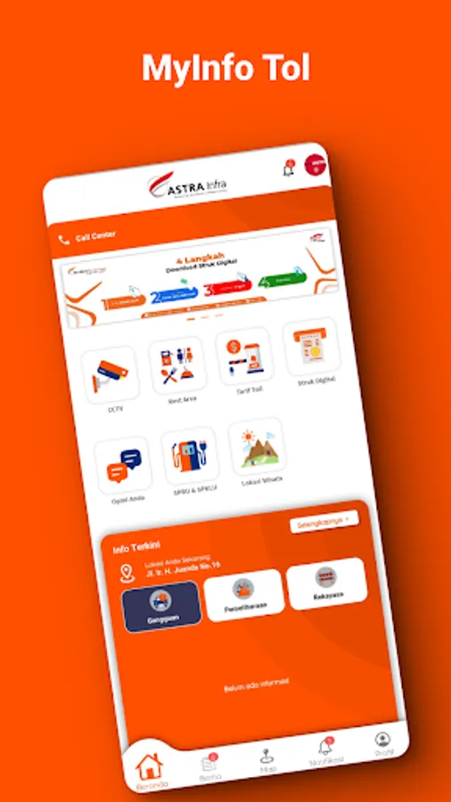 MyInfo Toll is an application for Toll users to facilitate users in supporting comfort while driving on Toll roads. Customer where the user can send various reports while on the go in case of an accident, or there are criticisms and suggestions.