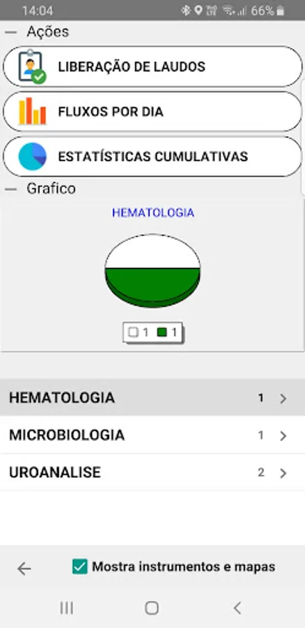 Application for the biochemist and the technicians of the Laboratory that can follow the routine of the Laboratory in real time, release reports via mobile in transit, provides access to financial data, statistics, user access, traces and etc.