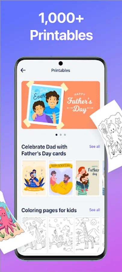 - Print printables: greetings cards, coloring pages, kid learning worksheets, productivity sheets, paper crafts