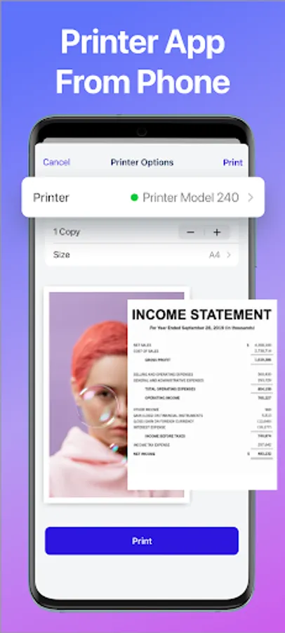 Multi-function Printer on your phone include key features: