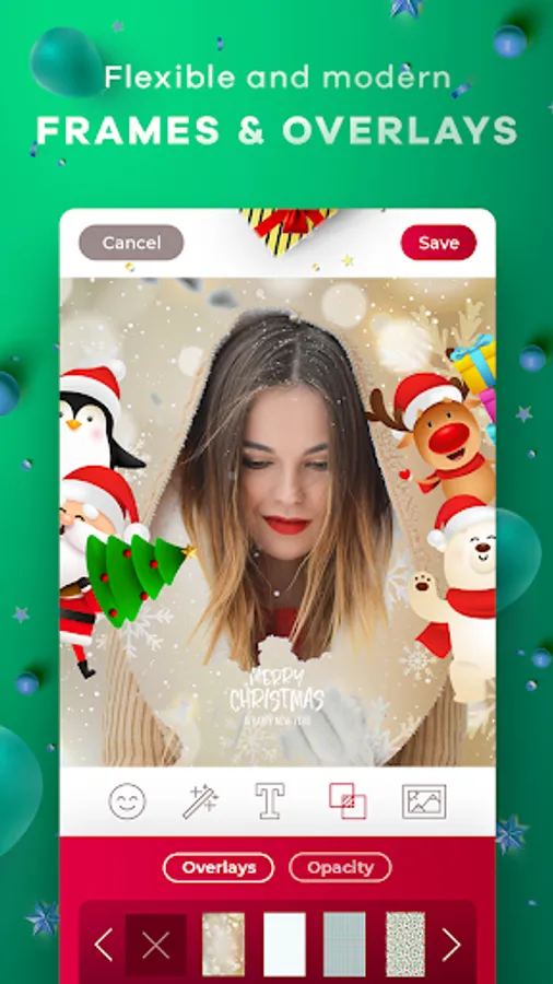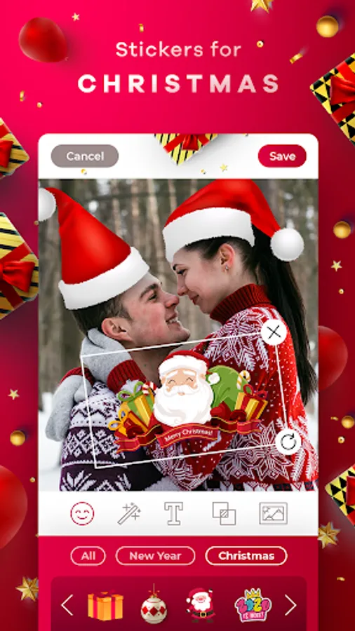 Send greetings frames & stickers to your beloved ones, and make them feel special at the most beautiful time of the year. This free and user friendly photo editor is fantastic, simple and very easy to use. New Year photo frames and Christmas stickers are here to captivate your holidays and make them unforgettable. Don’t miss this amazing opportunity and chance to have a great time. Start the New Year in the best way possible. Happy New Year 2023 everybody. Enjoy your holidays!