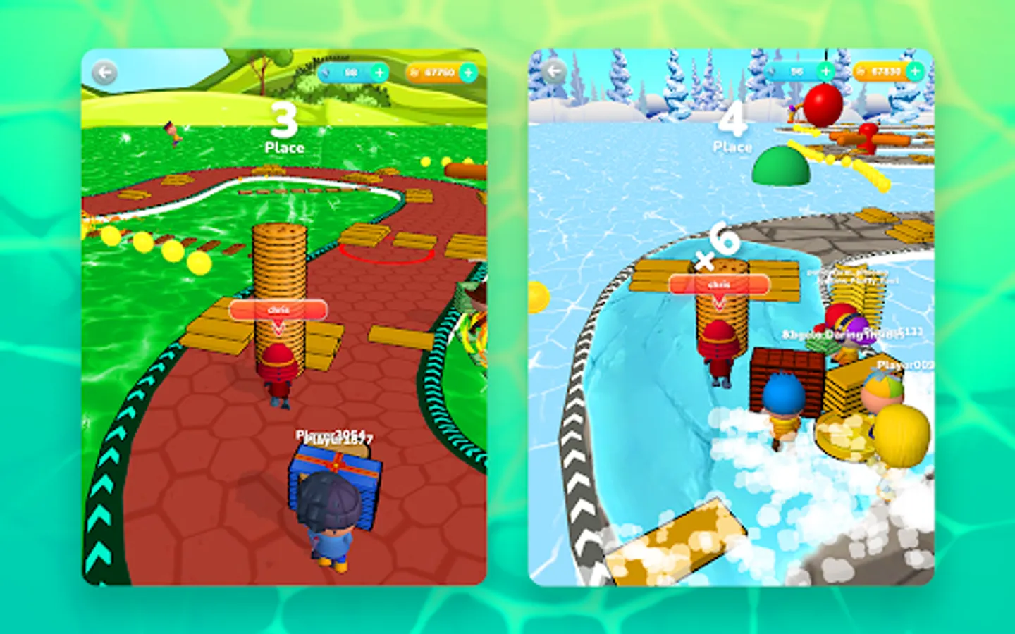 ◉ Race against opponents, or race against your friends or family members, and stack up all the floorboards you can pick up along the way! Keep running, build bridges and take shortcuts to get to the finish line before everyone else! Stacking games are the best ones to play with your friends and our Shortcut Run - Multiplayer Game is the greatest because it allows you to play online with your friends in the same time!