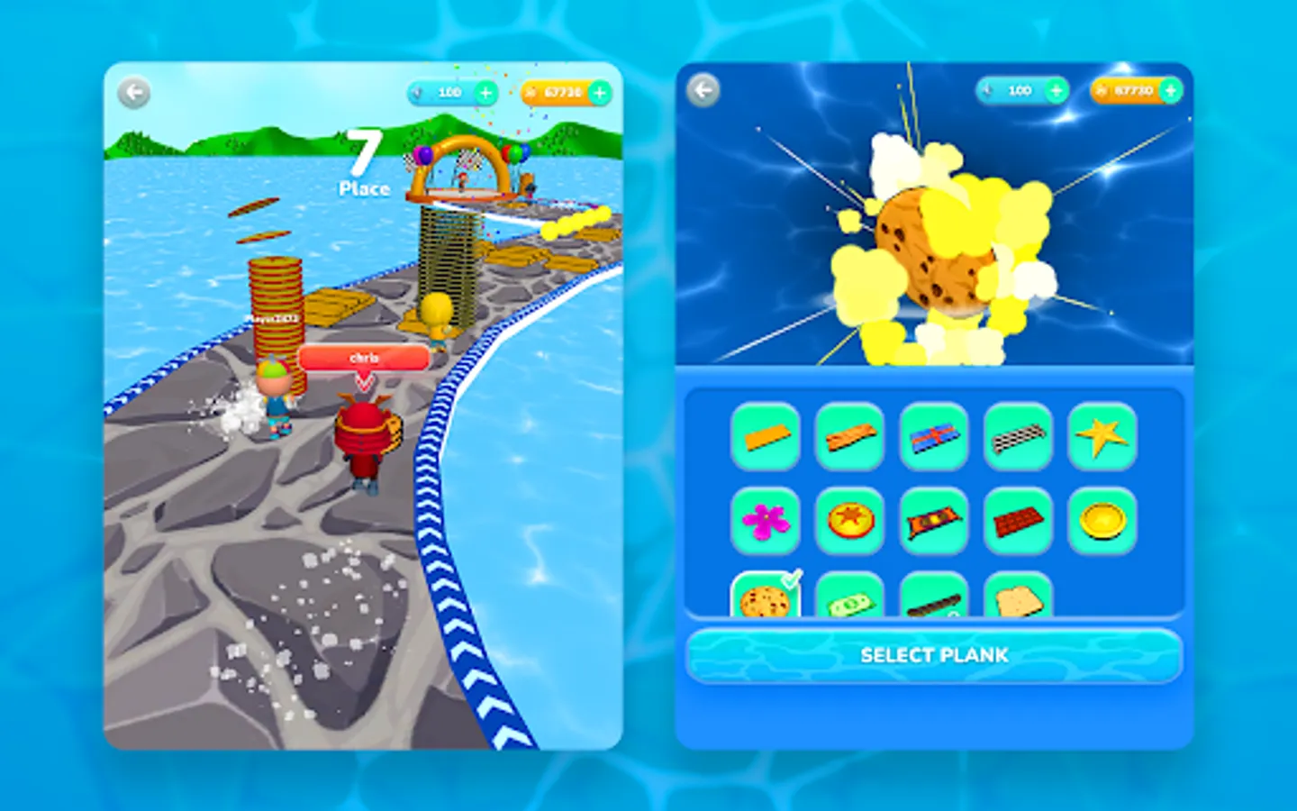 🔵 Choose the type of the plank you will collect through the game, for example: flower, cookie, shield, a skateboard, etc.