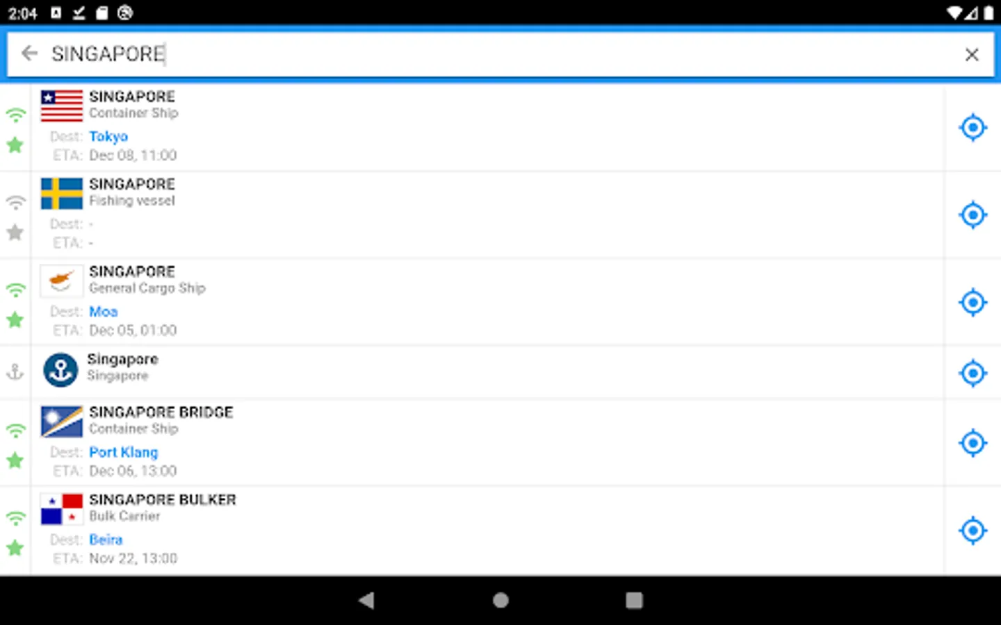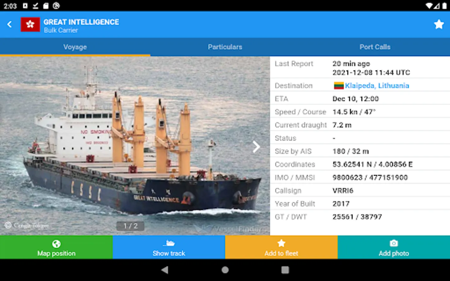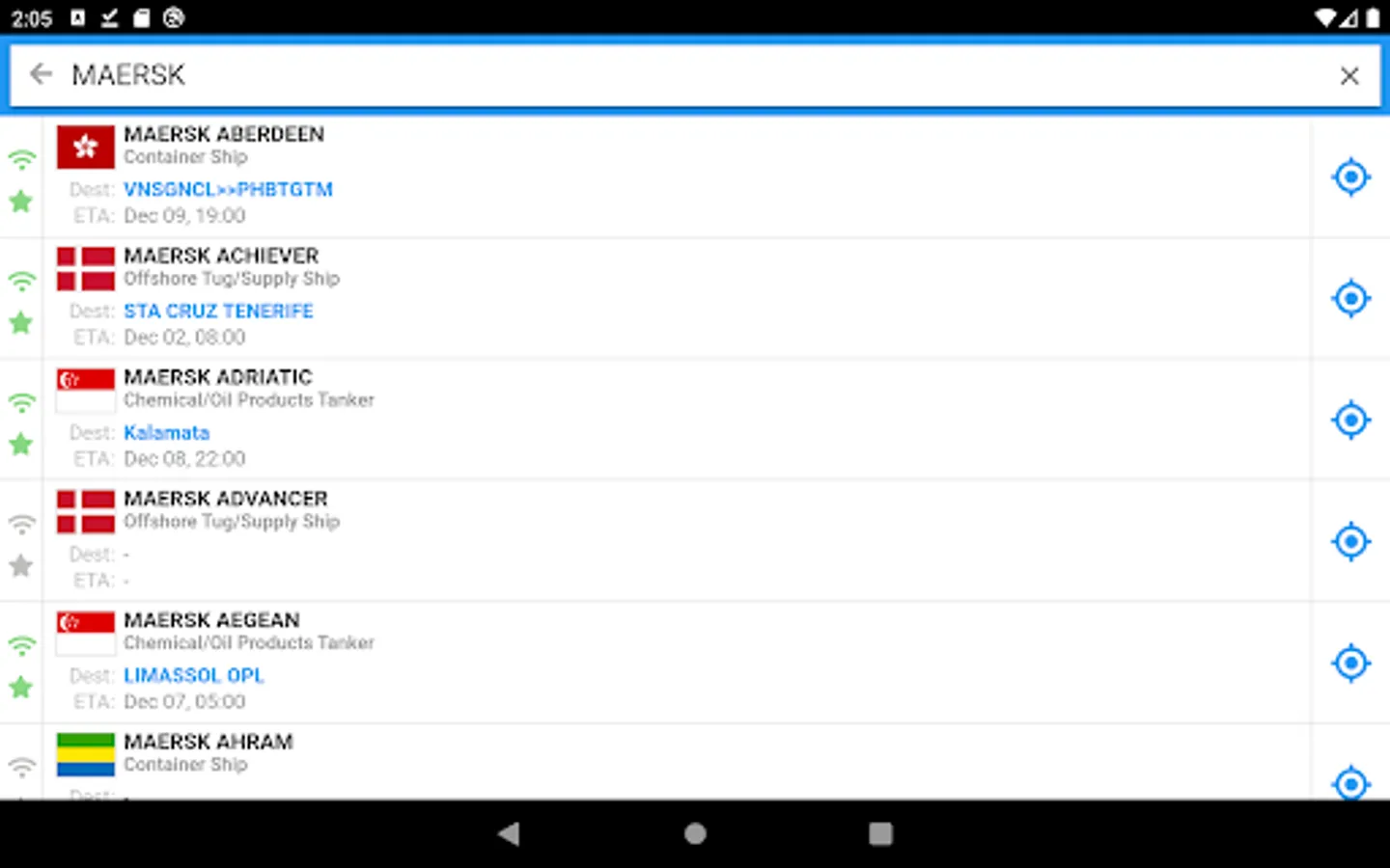 - My Fleet - add your favourite vessels to "My Fleet," synchronised with your VesselFinder account