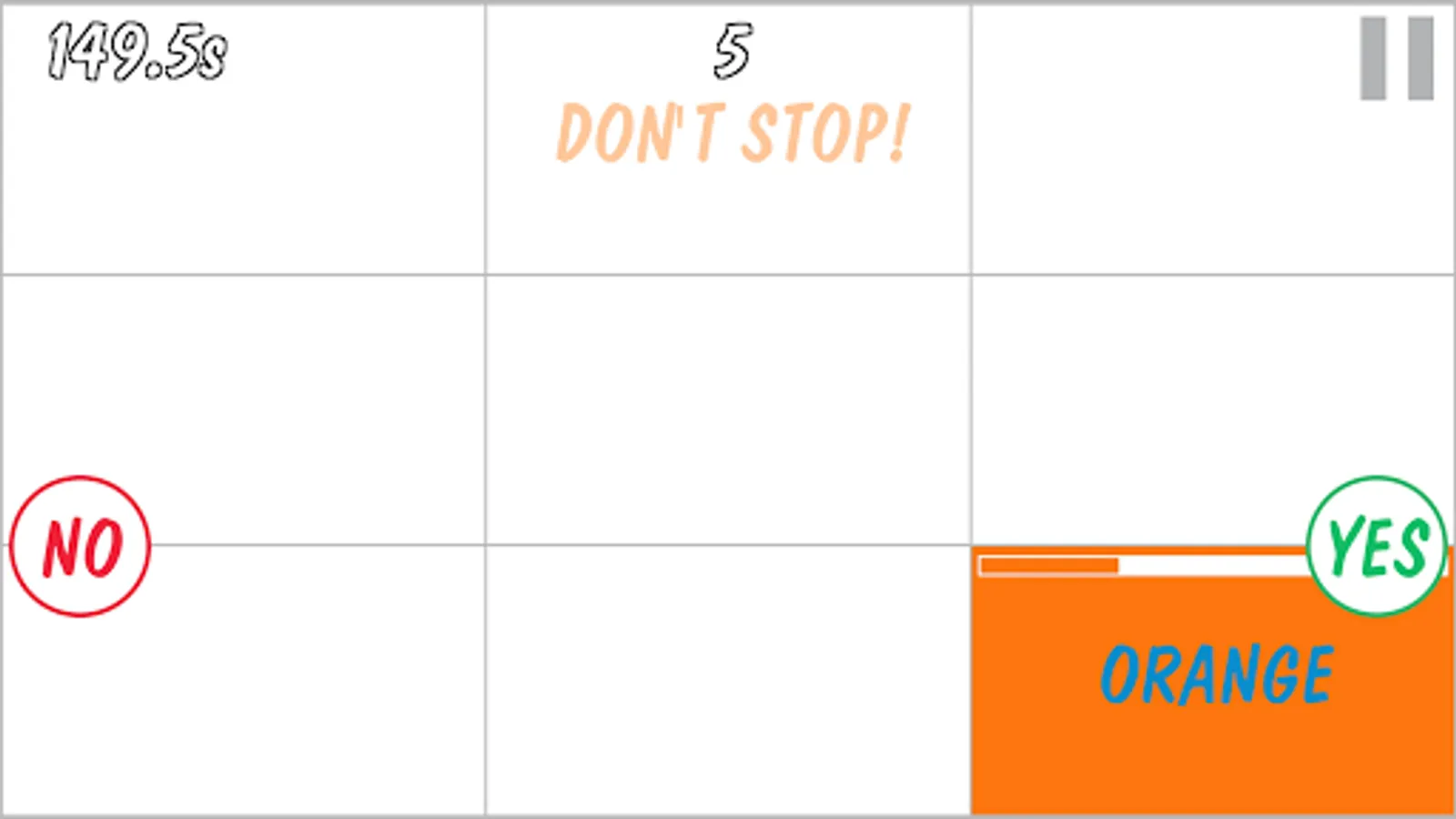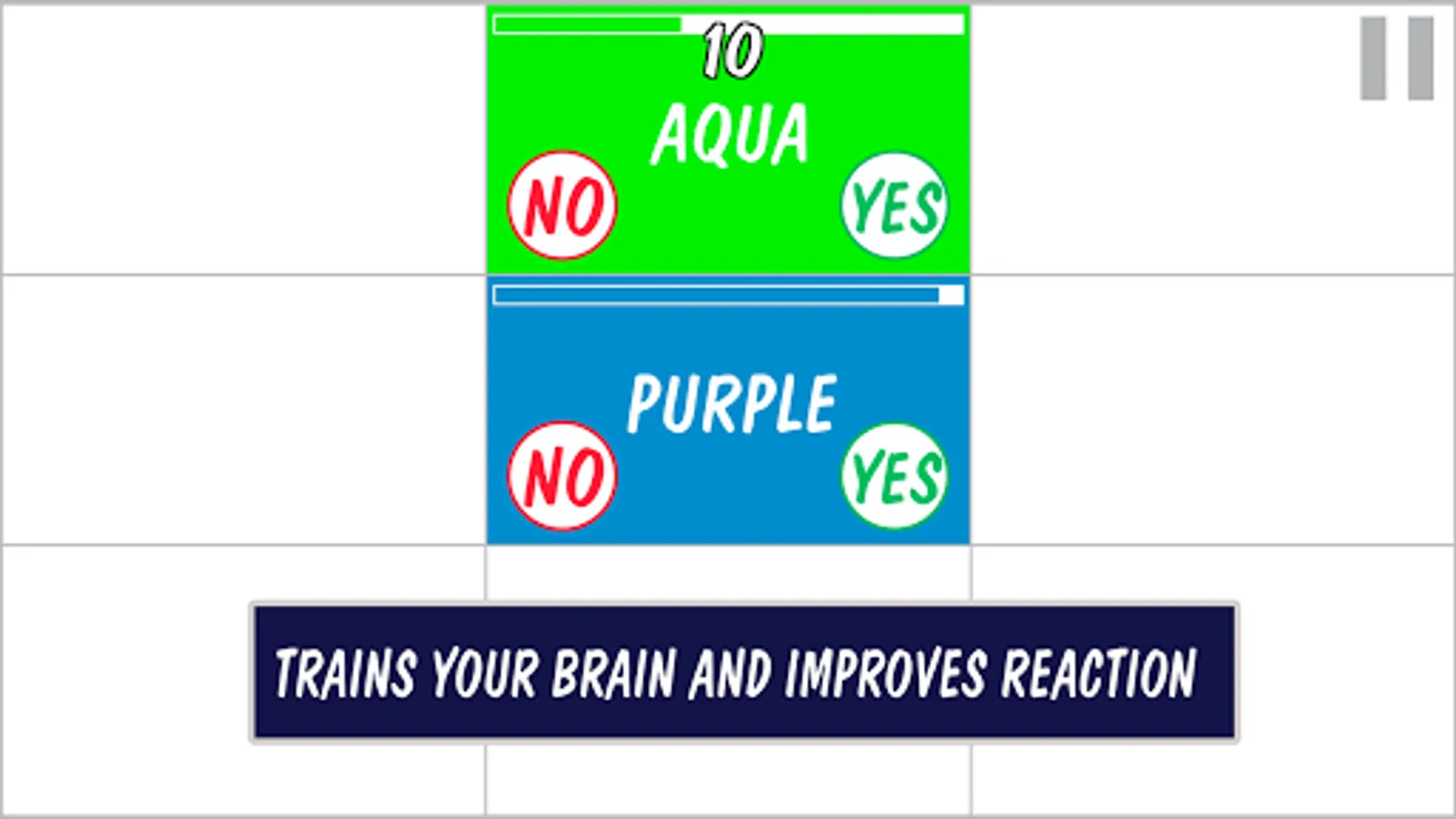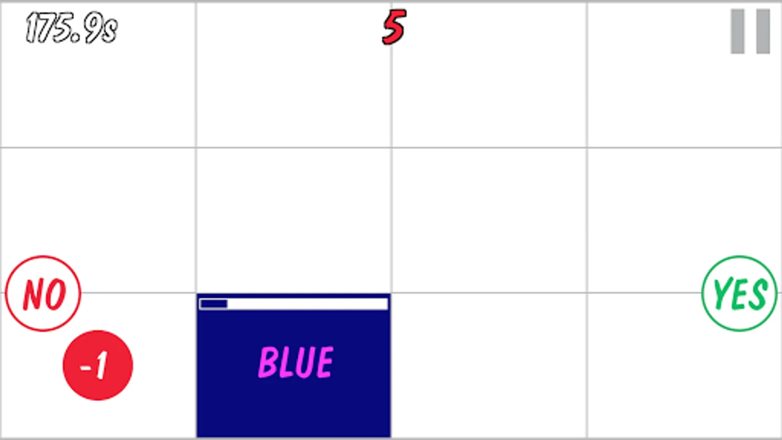 The aim is to score as many points, determining accordance of color of the tile and words on it by pressing buttons "YES" and "NO" for the time that is displayed on a tile as a filling bar. But do not flatter yourself, each mode has its own pitfalls ...