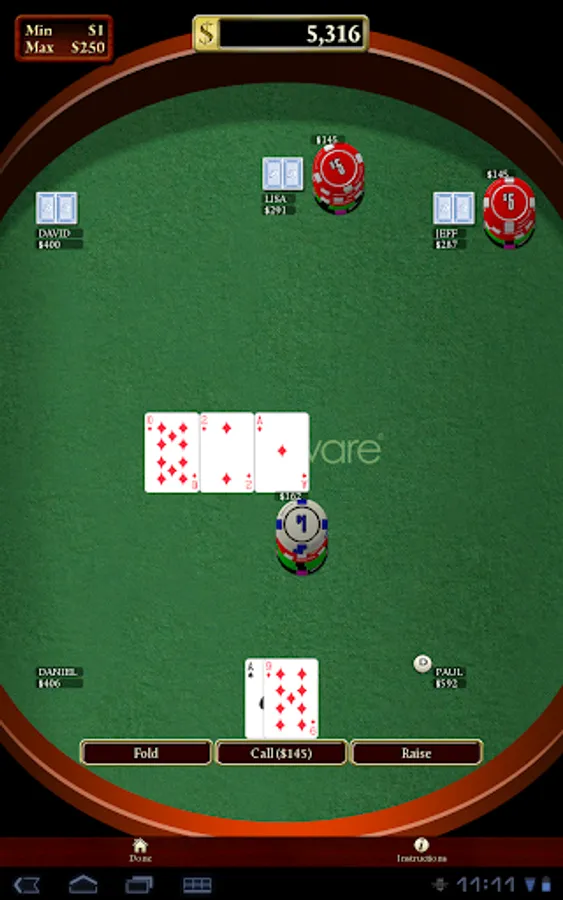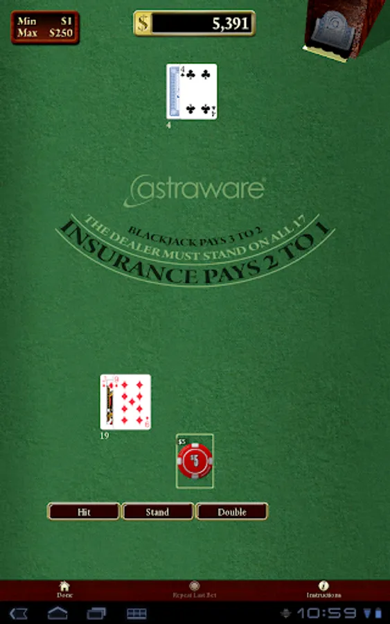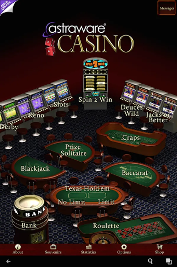Astraware Casino HD includes instructions on how to play each of the games, so you can enjoy trying them without playing with real money. Astraware Casino includes a bank where you can get an overdraft if your luck is out, or stash your cash if you win big!