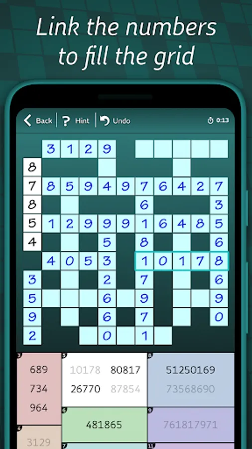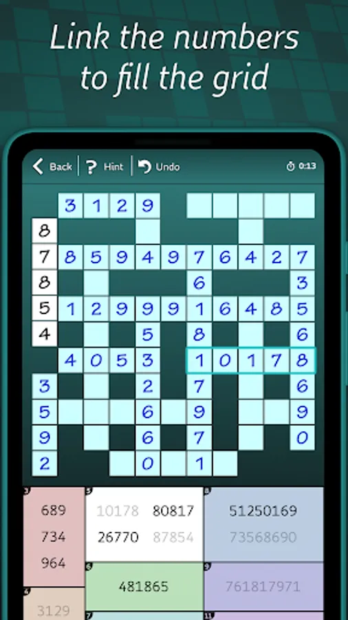 Number Cross is a logic puzzle that puts your deductive skills to the test! Also known as number fill, number jig, or number fit, each jumbled puzzle gives you an empty grid and a list of numbers. Each number fits in just one place in the grid and it is up to you to figure out where. No arithmetic required - all you need are your problem solving skills!