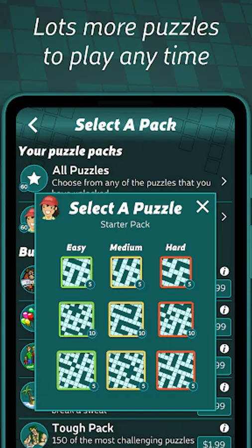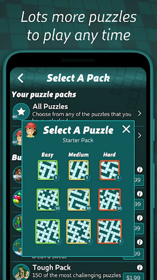Astraware Number Cross offers 50 built-in puzzles in 3 different grid sizes and 3 different difficulty levels so you can keep playing even after completing the Daily puzzle! If you are a big fan of Number Cross, you can get extra puzzle packs to keep you going.
