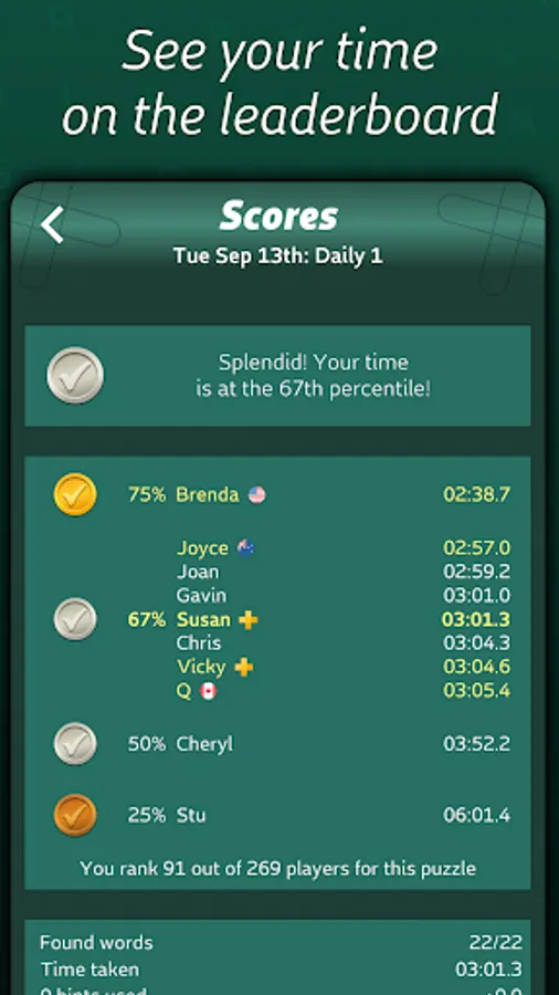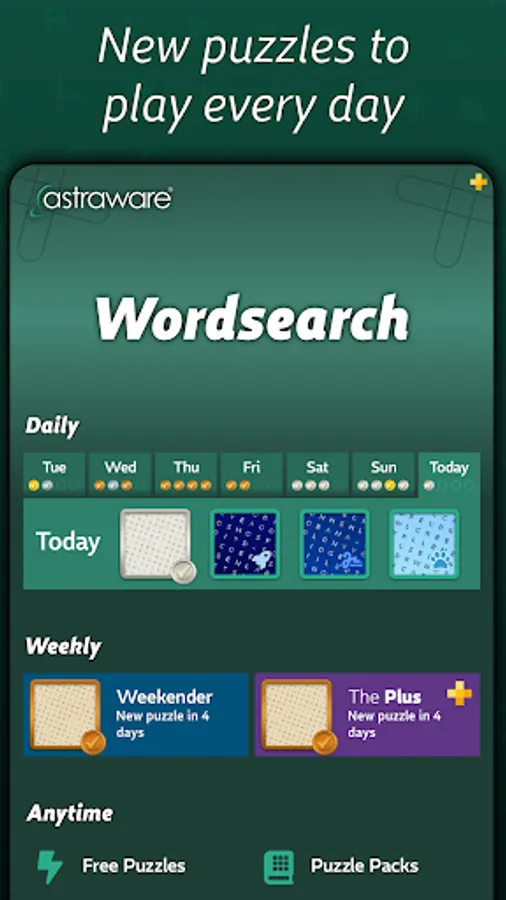 You get free unlimited access to play four new Daily Wordsearch puzzles each day, and you can see how your time compares on the global leaderboard!. There's also a free Weekender puzzle available each week for everyone to play!