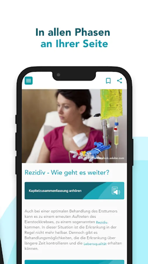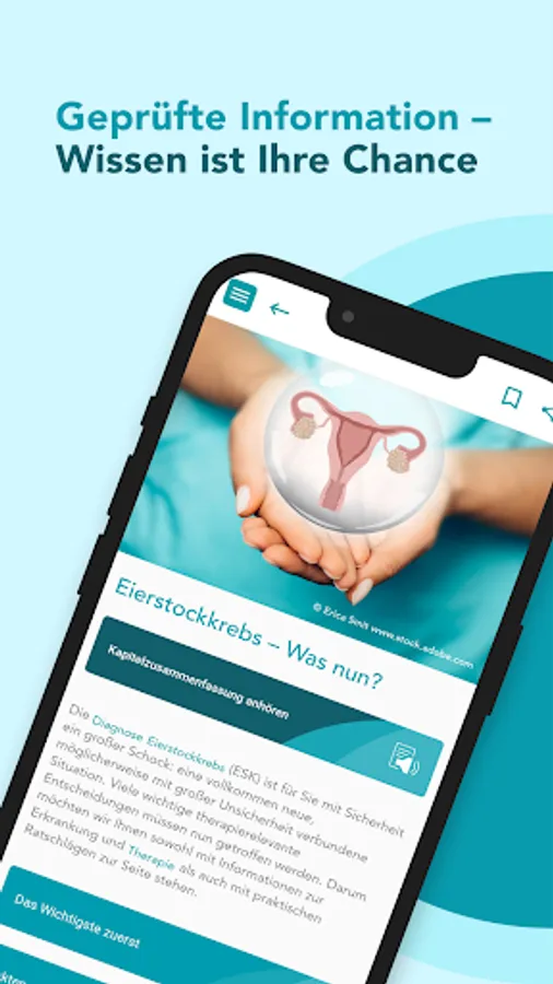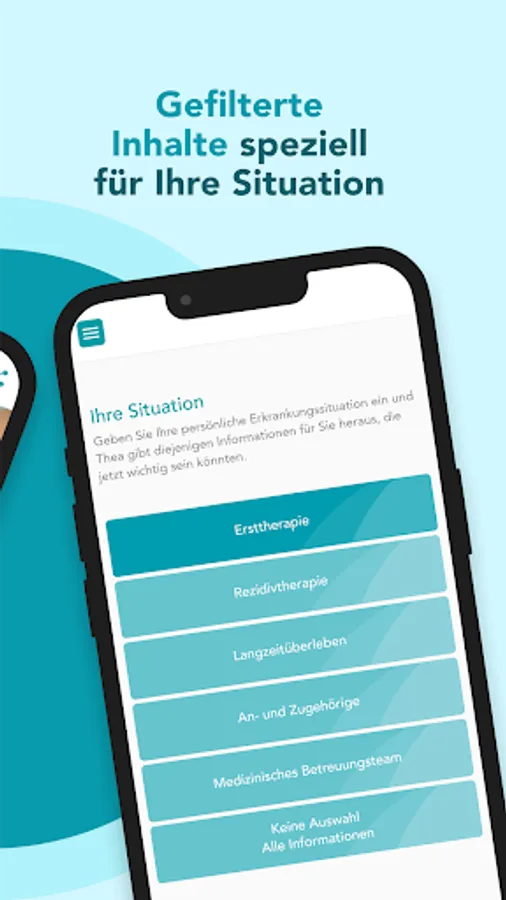 Thea stands for "Therapy Companion Ovarian Cancer App" and is aimed at affected women diagnosed with ovarian cancer and their relatives. The digital platform was developed to guide patients through the treatment in a knowledgeable and up-to-date manner with solid and verified information. The app is intended to provide those affected with offers and assistance for everyday life with and after the illness and to help them with difficult decisions or the doctor's consultation.