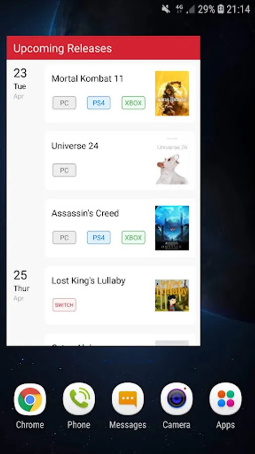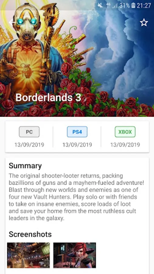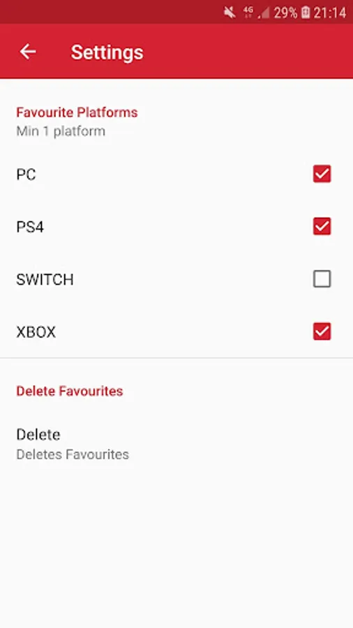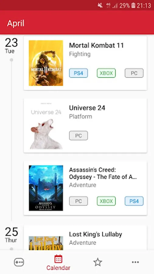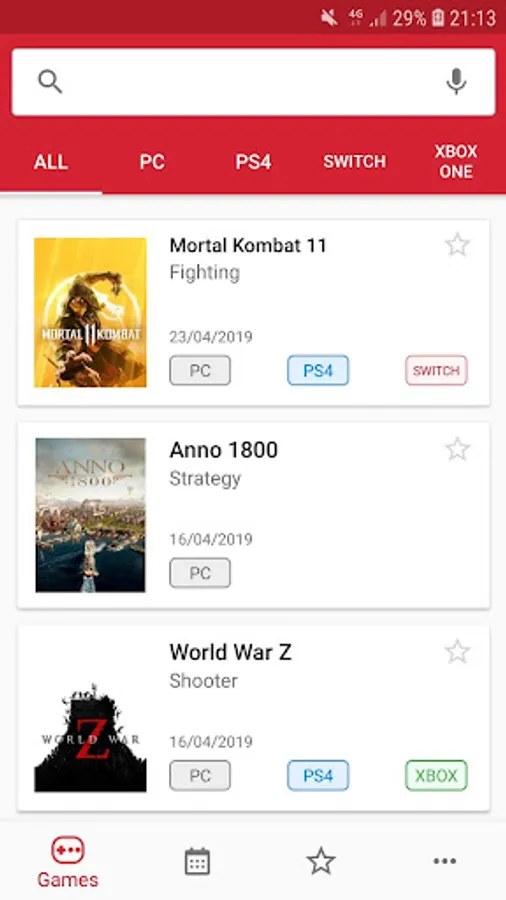• Shows games for platforms: PC, PlayStation 4, Nintendo Switch & Xbox One