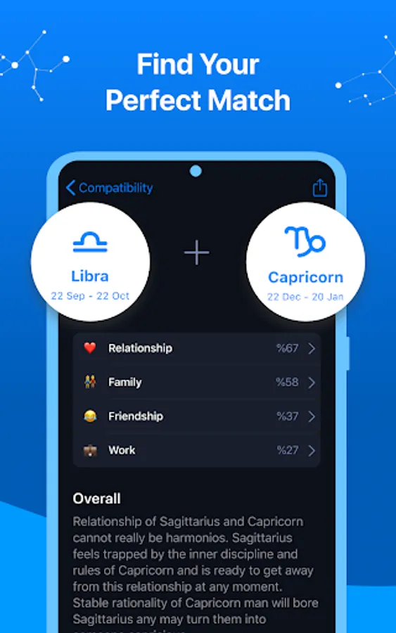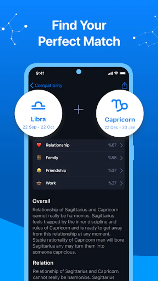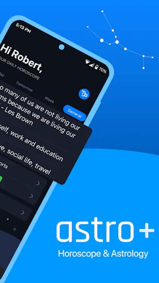 Astro+ Daily Horoscope Astrology is your personal astrologer at your fingertips to help you. We cover all zodiac signs: Aries, Taurus, Gemini, Cancer, Leo, Virgo, Libra, Scorpio, Sagittarius, Capricorn, Aquarius, Pisces. Enjoy your daily / weekly / yearly horoscopes for all zodiac signs for free. Astro+ Horoscope Astrology app predictions are based on a map of the sky at your exact date, time and place of birth, coupled with NASA data to track the planets as they move. Get your natal chart and astrology chart with advanced reports.