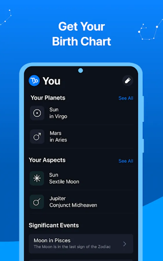 Astro+ is your guide to learn more about yourself with daily horoscope, zodiac and love compatibility, astrology, birth chart, moon calendar, numerology and palm reading.