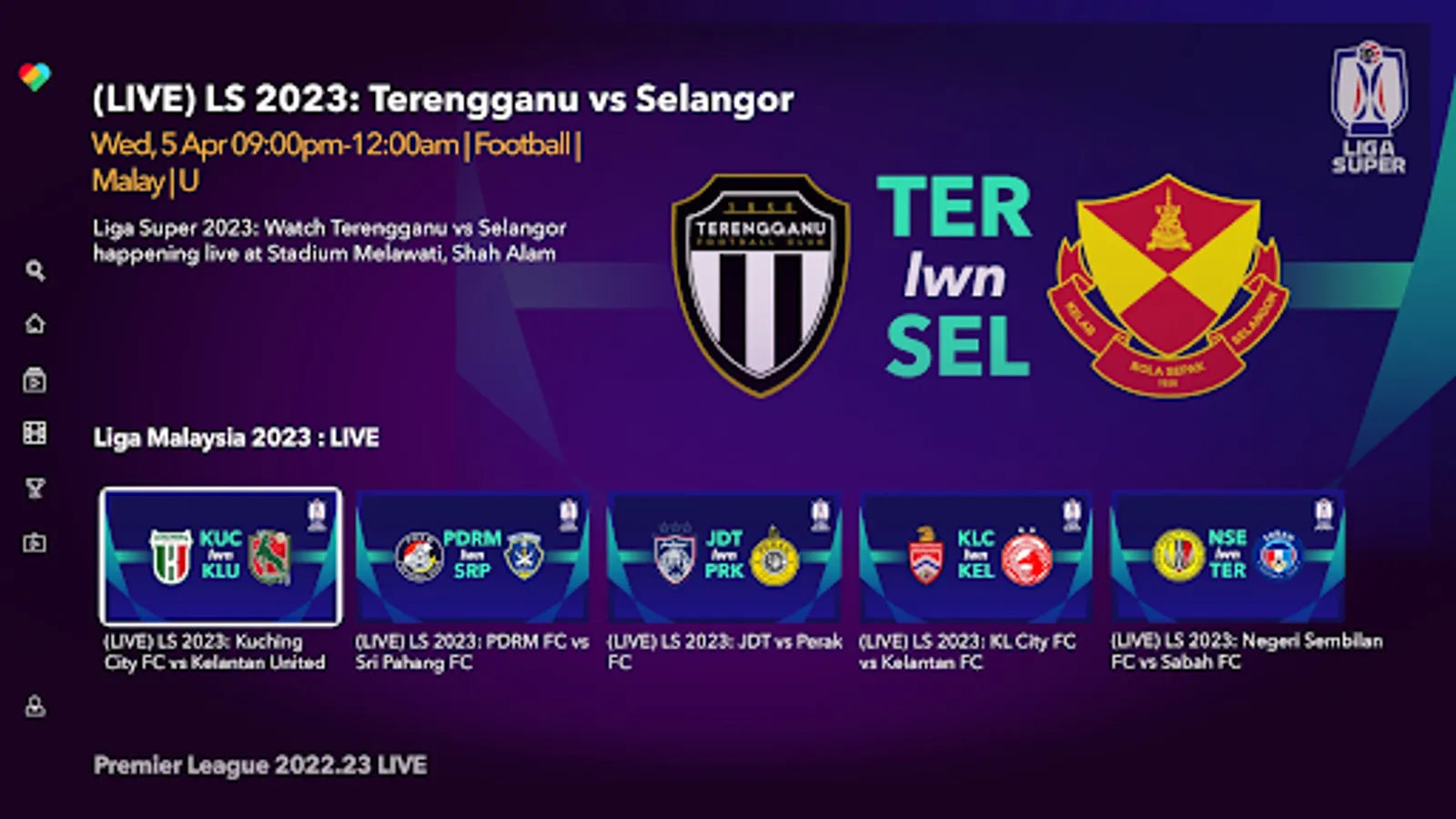 Layan Premier League 2023/24 dan sapot team korang dari mana jua! Subscribe je to Sports & Entertainment serendah RM 1.15/sehari* untuk stream semua jenis sukan macam Premier League, Liga Malaysia, Champions League, BWF Badminton, Formula 1 dan banyak lagi. Nak sokong team Premier League feveret je? Beli Single Match pass serendah RM13.90/match*.