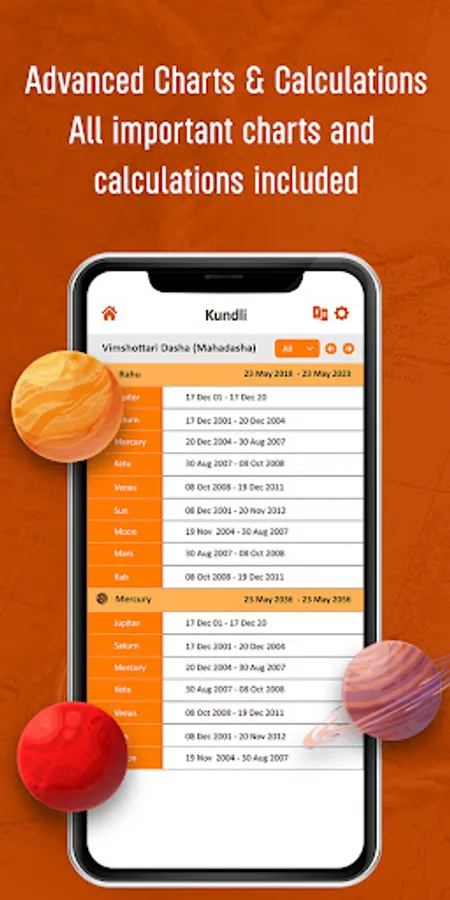 Get a complete astrological analysis, charts, progressions and predictions from this powerful Kundli app.