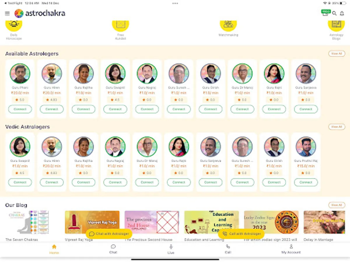 Connect on Call or Chat with your Favorite Astrologer or a Tarot reader or Nadi expert or maybe a Numerologer for answers to your life problems.