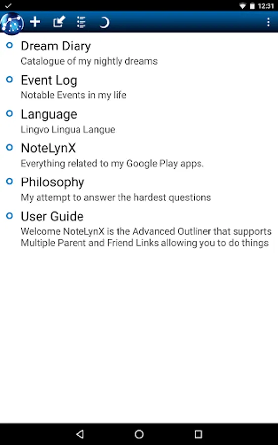 NoteLynX is the unique, 3-in-1 Outliner, Mindmap and Personal Wiki. An Outliner for Hierarchical Lists, a Mindmap for Graphical Tree View and embedded Hyperlinks to cross reference your notes.