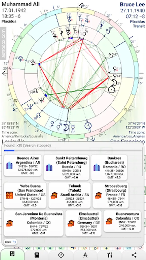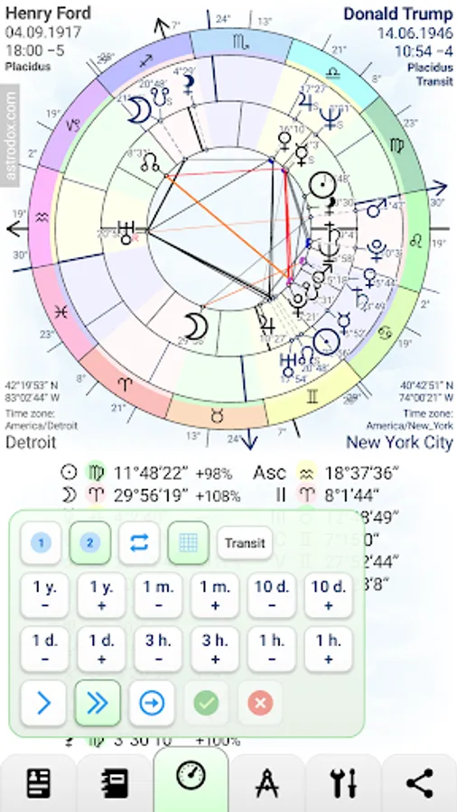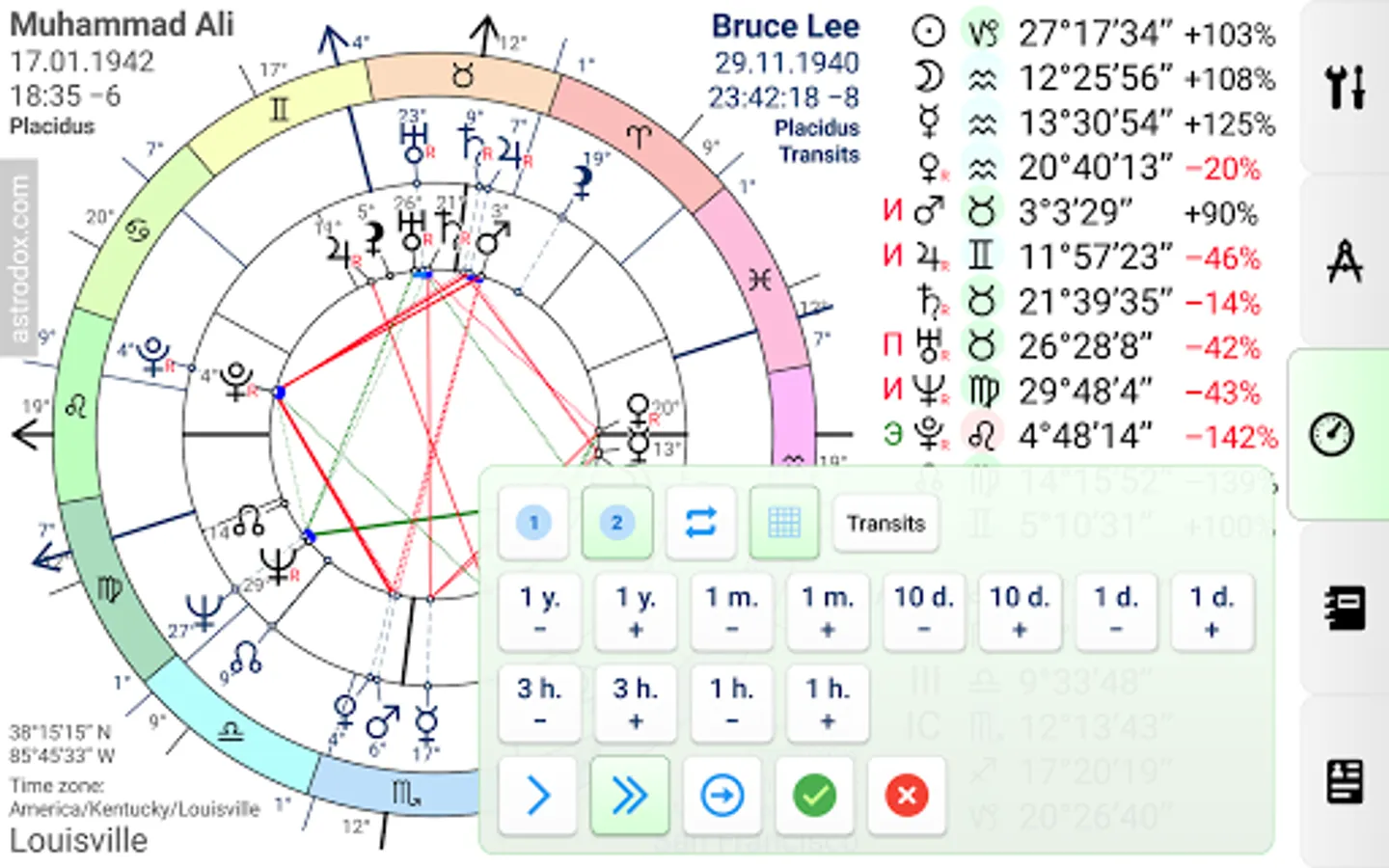 • Time dynamics for background and foreground data. You can step birth data by minute with open Transits, Progressions and Directions using it for rectification.