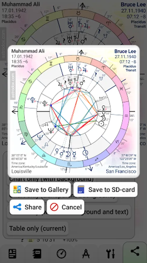 • Natal Chart (Radix) and other astrological charts: Transit Chart, Secondary Progressed Chart, Directions.