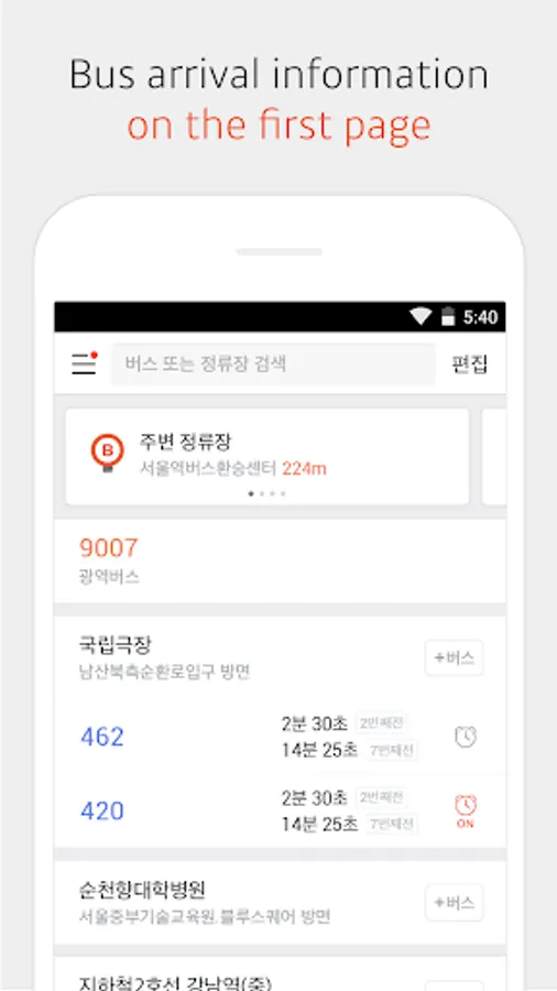 * Suggestions based on your current location : Nearby Stops, Night Buses Nearby, Direct Bus to Home, Kakao Taxi
