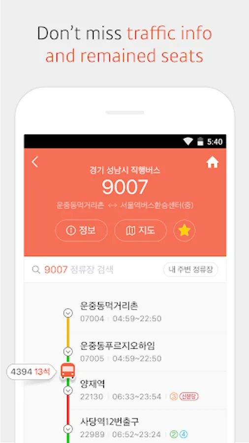 Kakaobus provides you with real-time bus and bus stop information of 57 Korean cities.