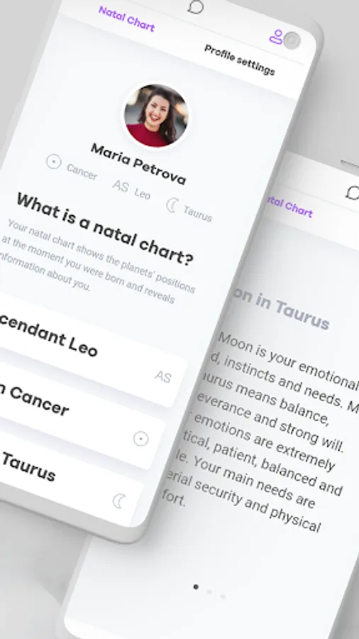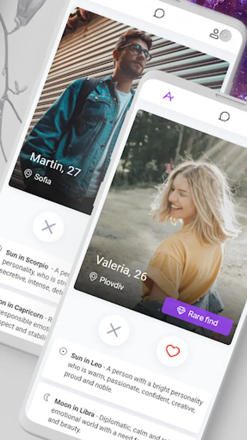Our team invested years of research and development to create a sophisticated and highly-personalized astrological algorithm which calculates your natal chart (astrological profile) and compares it to all the other users taking into consideration all the love-related aspects you create.