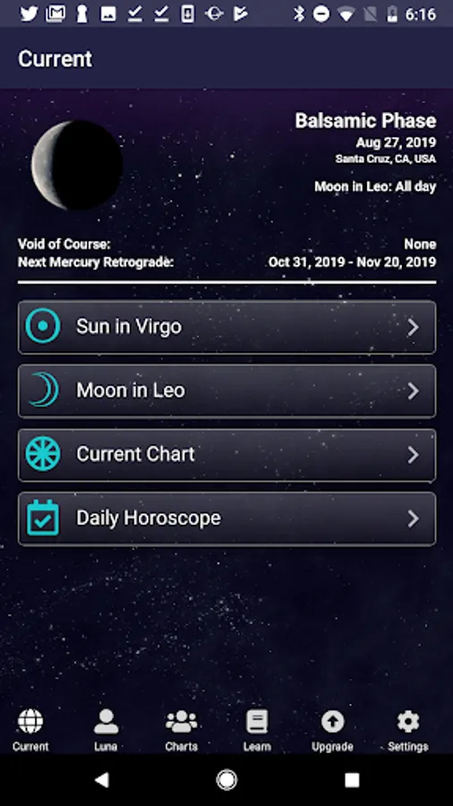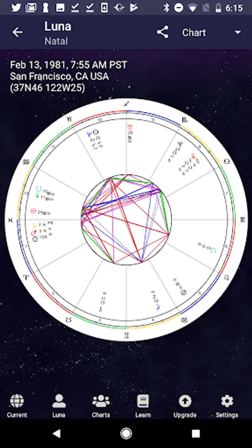 * Up-to-the-minute chart of the current astrology is just a tap away.