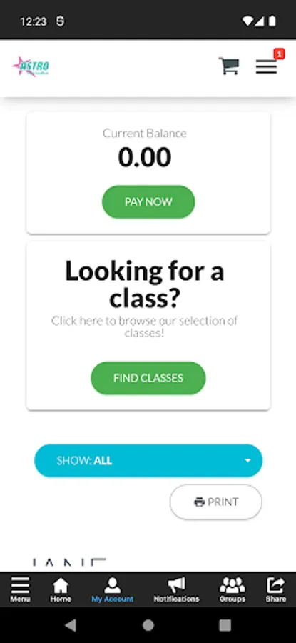 The Astro app allows you to manage your account with ease, register for classes, parties, and special events. You'll also receive important notifications about class changes, closings, registration openings, special announcements, and upcoming events.