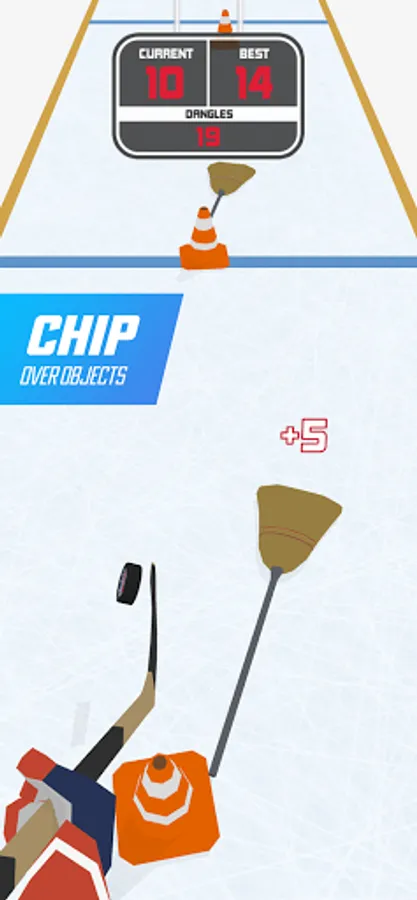 Deke, chip, and toe drag through a fun hockey experience like no other. By using one touch controls, this is a new fun way to play hockey on mobile. Swipe-up to chip the puck in the air, swipe-down to perform a toe drag, and tap the screen three times quickly to go on fire, which adds a temporary multiplier.