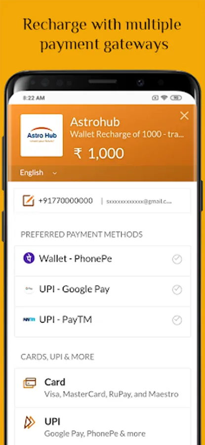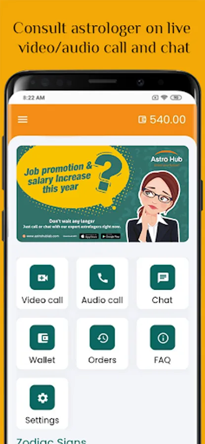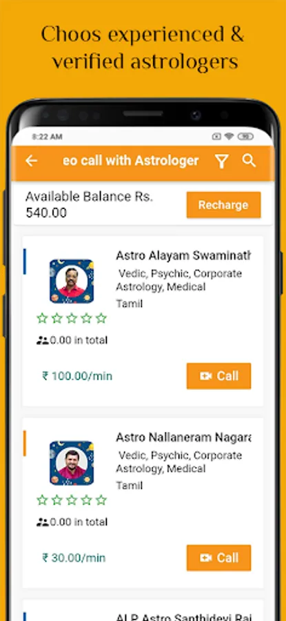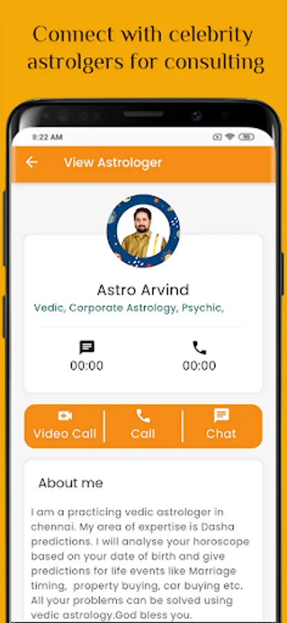 Users can use this app to search for suitable astrologers and schedule a consulting with them either through texts or through audio. Users can also write a review and give a rating to an astrologer after the consultation. The users can also recharge their wallet, The charges for a call or a chat session will be automatically debited from the user wallet.