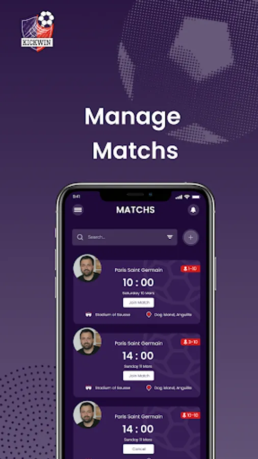 Kickwin is a social platform that provide a solution for user scheduling, organizing football matches and booking pitches