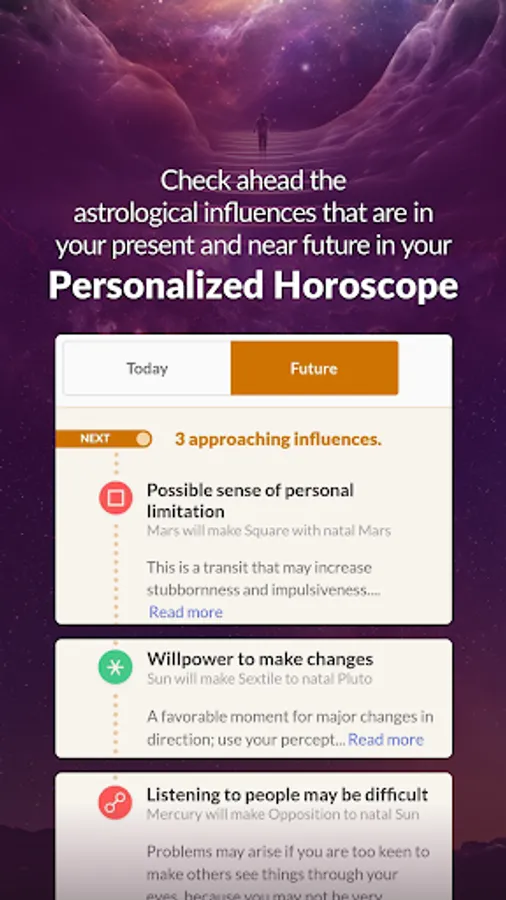See what the influences of the stars are on you in a super detailed and totally unique daily horoscope, suitable for your birth chart.