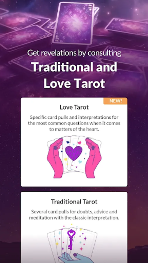 Consult the tarot and find answers to your questions at the moment and the best paths to follow. You can also record a diary about your queries and emotions and see the relationship between tarot and astrology.