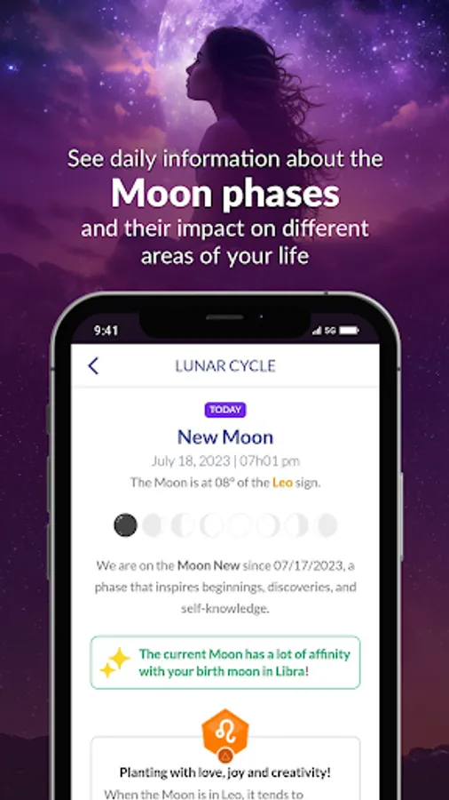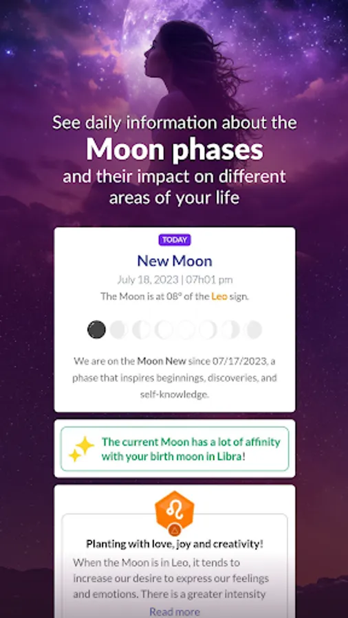 See daily information about the phases of the moon with tips on the influences of each lunation, relating to your mood and discovering the best days for making decisions.
