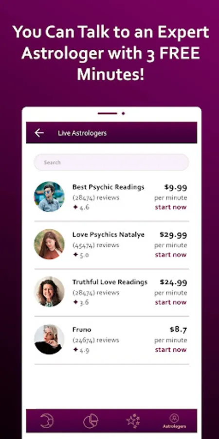 Review all psychics, choose your favorite Psychic and start a conversation with him/her. Get a FREE Psychic reading for the first 3 minutes!