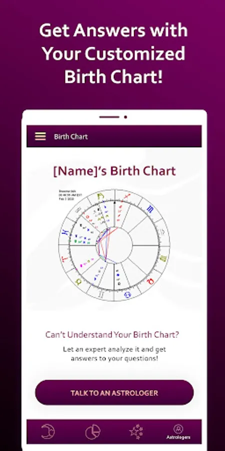 ✓ Get your customized birth chart based on the constellation of the stars at the time of your birth