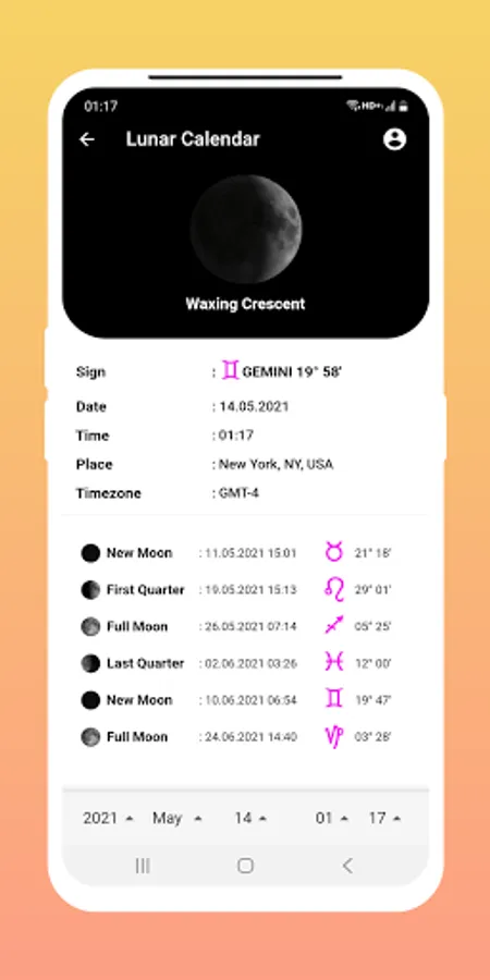 You can select the desired date on the charts for transit, progress and now. In this way, you can get daily personal astrology comments or look at the charts of a different history.