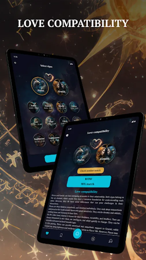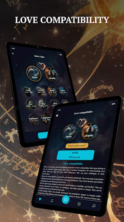 🌐 You wanna find your love? We created zodiac sign compatibility opportunity so you can easily check what signs suits you or another person!