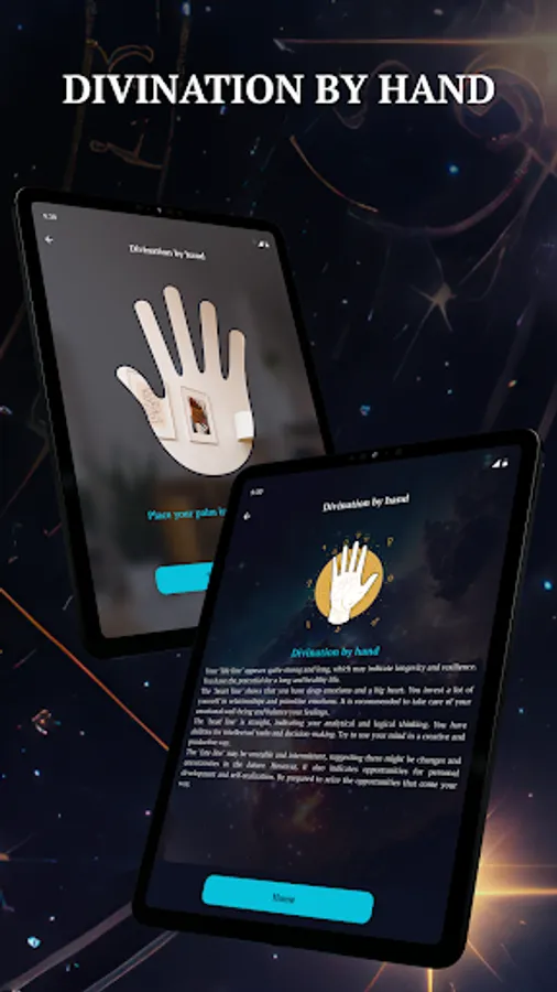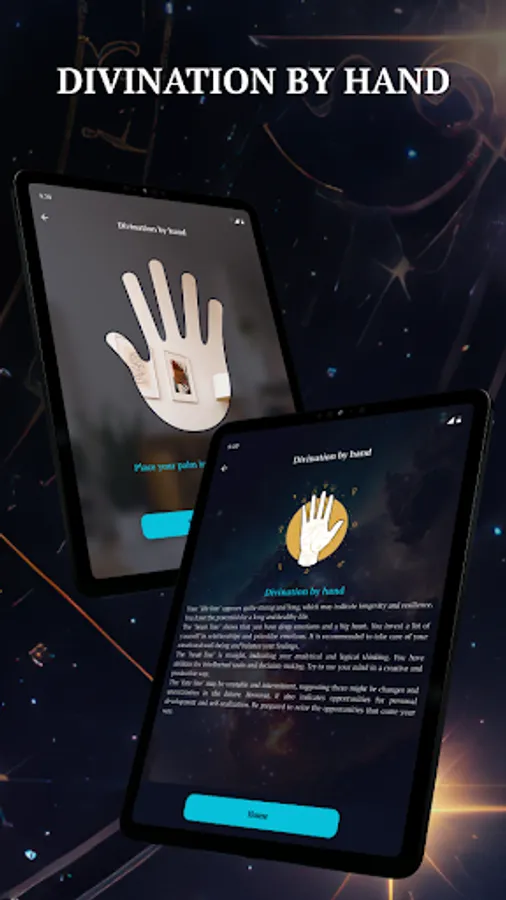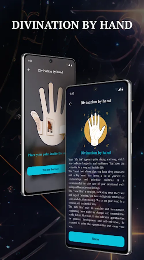 Our application has several more interesting features, and one of them is chirology! How does it work? You make a picture of your hand and the palm reader creates detailed hand reading predictions specifically for you! So you can always try palmistry for you and all your friends.