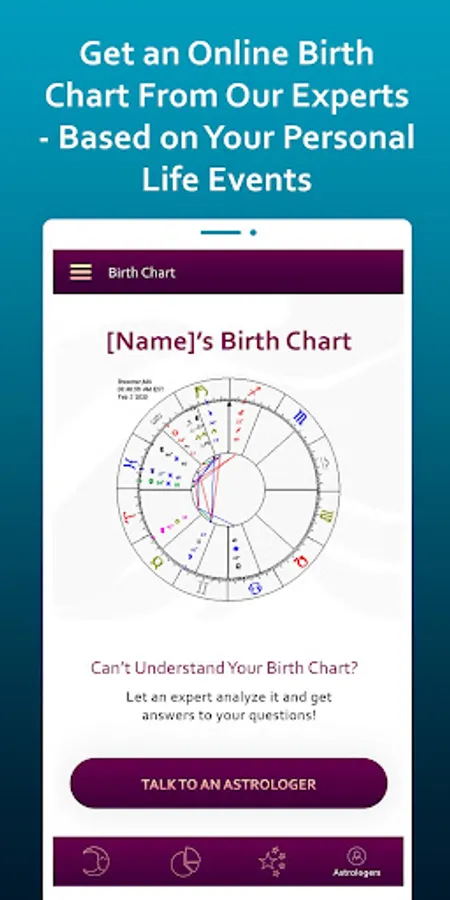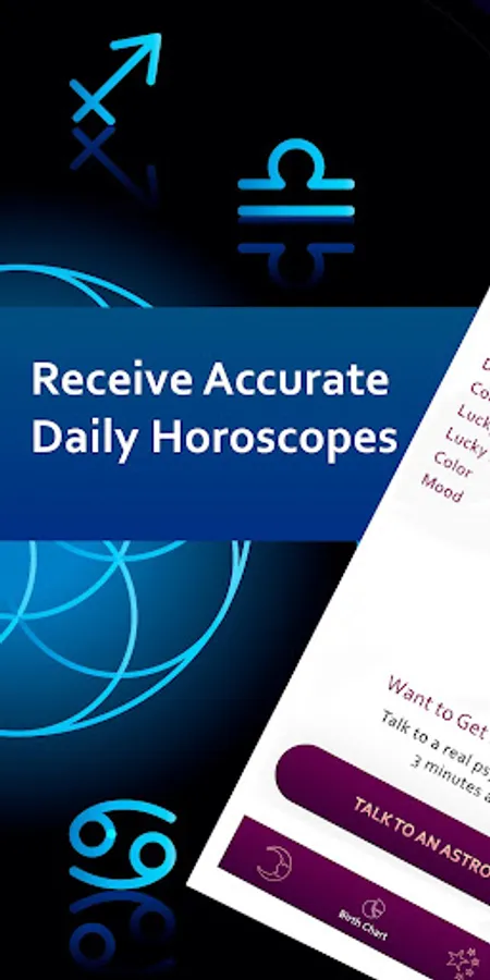 Download the app, choose your astrology sign, get your online birth chart and talk with a real astrologer about it ! get clarity about your future!