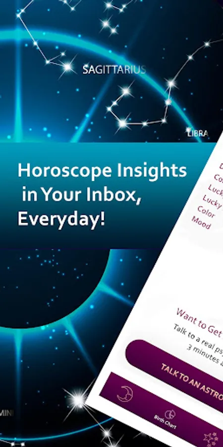 Thanks to our astrology wizard, you will get daily capricorn birth chart, aquarius birth chart, pisces birth chart, aries birth chart, taurus birth chart, gemini birth chart, cancer birth chart, leo birth chart, virgo birth chart, libra birth chart, scorpio birth chart and sagittarius birth chart- also get daily horoscopes. In addition, you will receive daily insights based on your zodiac sign, complete with real astrologers profiles that you can chat to!